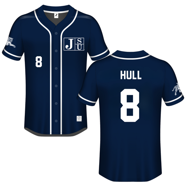 Jackson State University Navy Button-Down Jersey - #8 Davione Hull