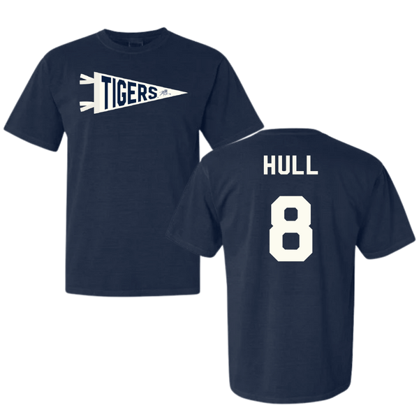 Jackson State University Baseball Navy Pennant Comfort Colors Tee - #8 Davione Hull