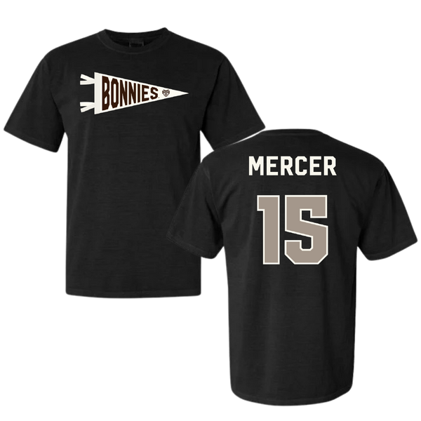 St. Bonaventure University Soccer Black Pennant Comfort Colors Tee - #15 Dean Mercer