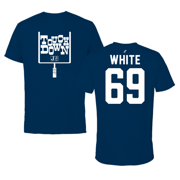 Jackson State University Football Navy Touchdown Tee - #69 Dequarious White