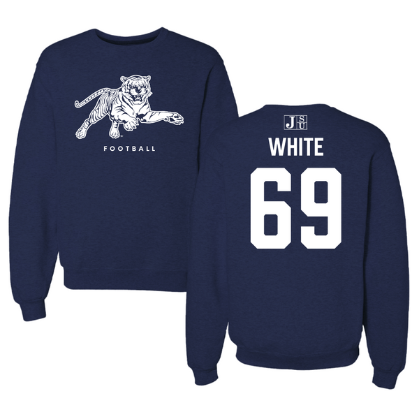 Jackson State University Football Navy Crewneck - #69 Dequarious White