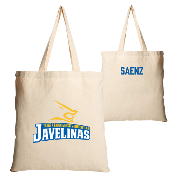 Texas A&M University-Kingsville Baseball Tan Canvas Tote Bag - Derek Saenz