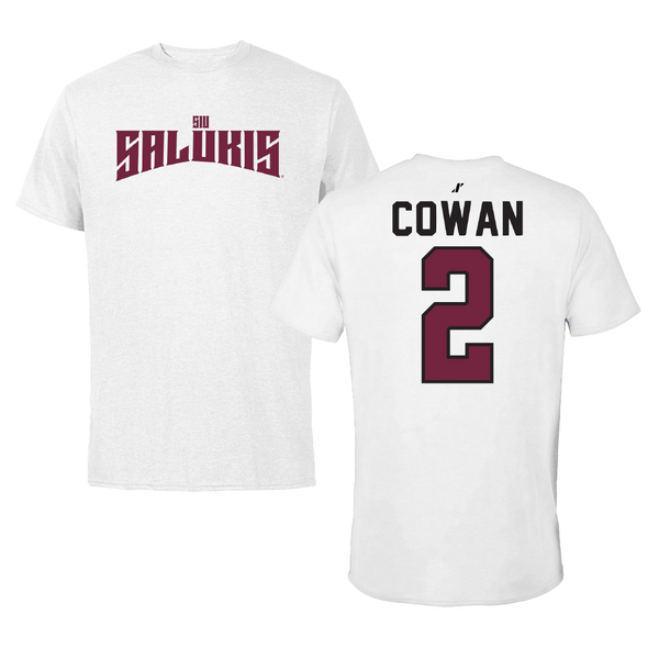 Southern Illinois University at Carbondale Football White Classic Tee - #2 Devin Cowan