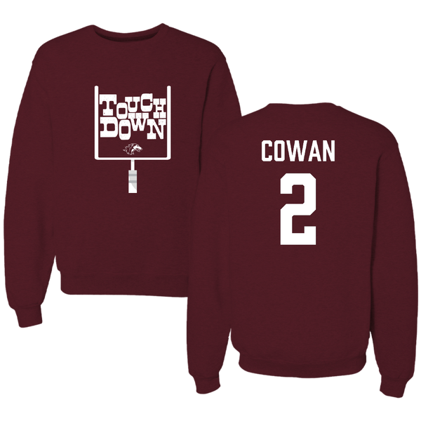 Southern Illinois University at Carbondale Football Maroon Touchdown Crewneck - #2 Devin Cowan