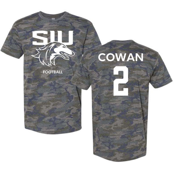 Southern Illinois University at Carbondale Football Vintage Camo Tee - #2 Devin Cowan