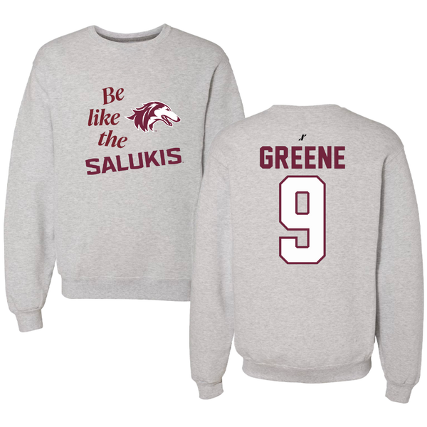 Southern Illinois University at Carbondale Football Light Gray Be Like Us Crewneck - #9 Dewey Greene