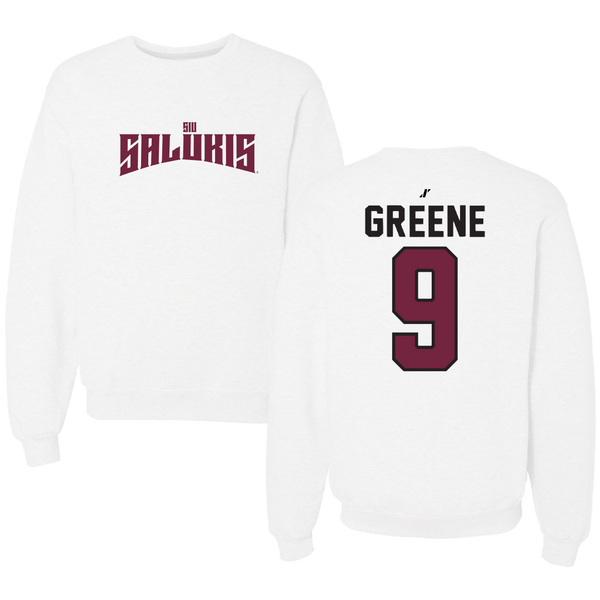 Southern Illinois University at Carbondale Football White Classic Crewneck - #9 Dewey Greene