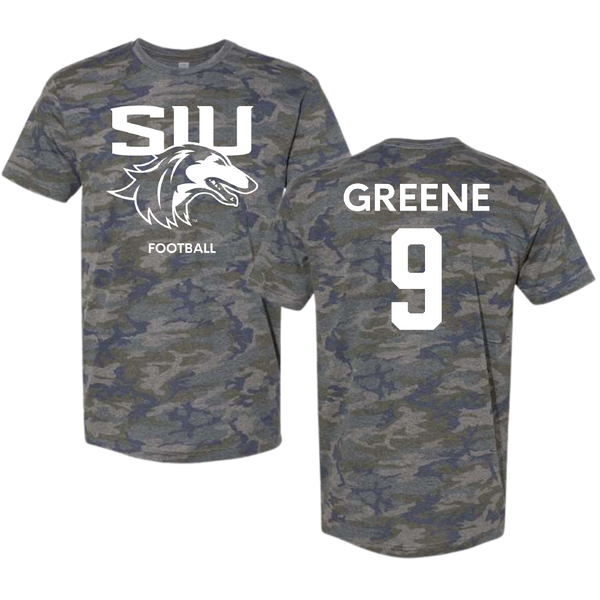 Southern Illinois University at Carbondale Football Vintage Camo Tee - #9 Dewey Greene
