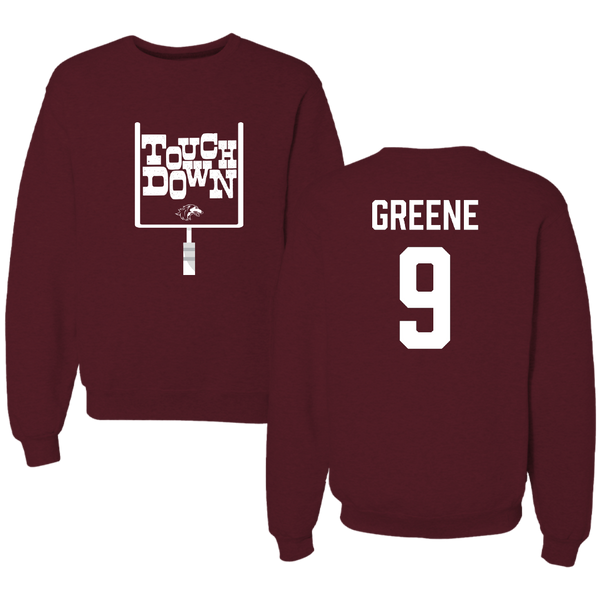 Southern Illinois University at Carbondale Football Maroon Touchdown Crewneck - #9 Dewey Greene
