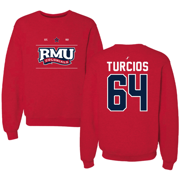 Robert Morris University Football Red General Crewneck - #64 Diego Turcios