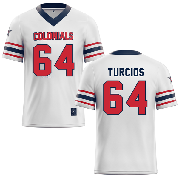 Robert Morris University White Football Jersey - #64 Diego Turcios