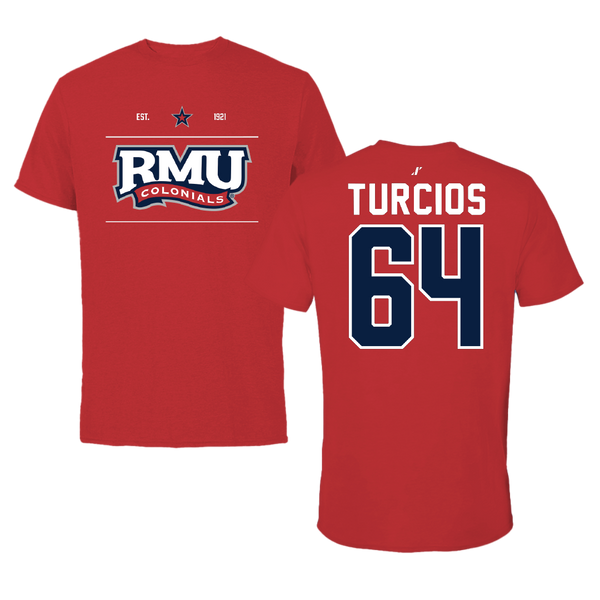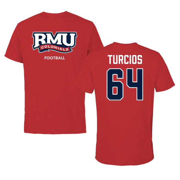 Robert Morris University Football Red Tee - #64 Diego Turcios