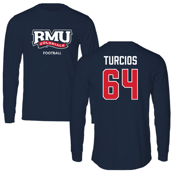 Robert Morris University Football Navy RMU Long Sleeve - #64 Diego Turcios