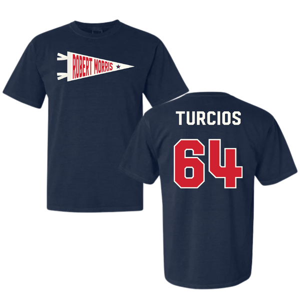 Robert Morris University Football Navy Pennant Comfort Colors Tee - #64 Diego Turcios