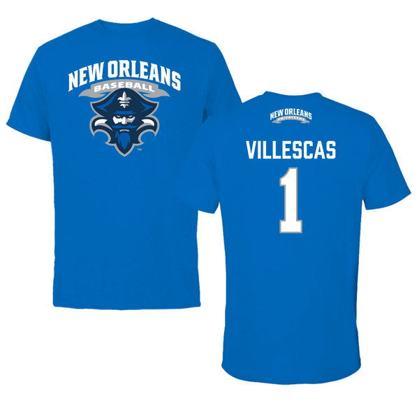 University of New Orleans Baseball Blue Mascot Tee - #1 Diego Villescas
