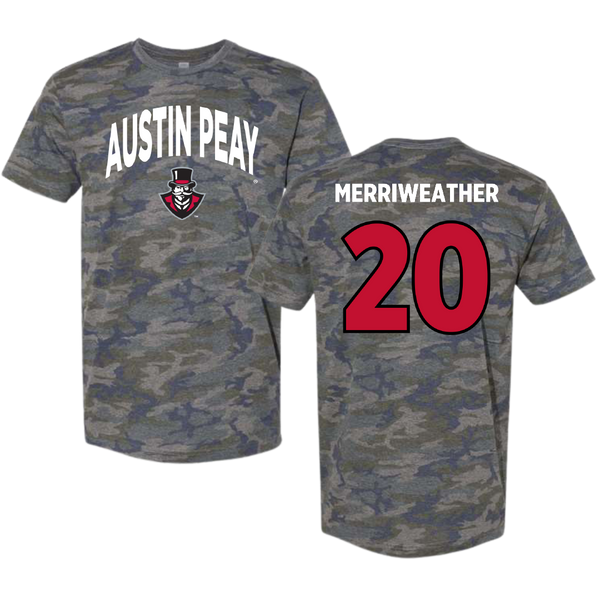 Austin Peay State University Baseball Vintage Camo Tee - #20 DJ Merriweather