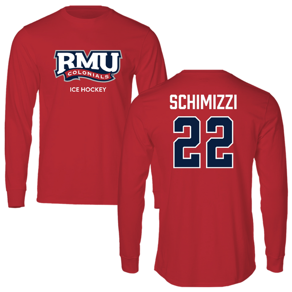 Robert Morris University Ice Hockey (M) Red Long Sleeve - #22 Dominic Schimizzi