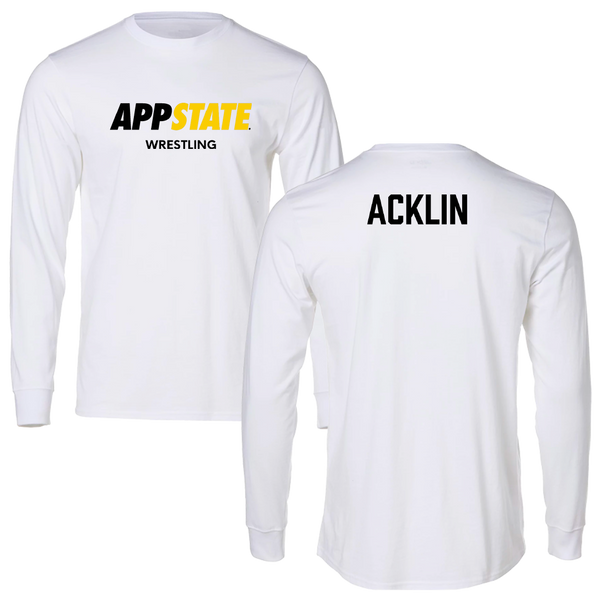 Appalachian State University Wrestling (M) White Block Long Sleeve - Drake Acklin