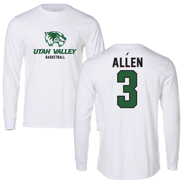 Utah Valley University Basketball White Long Sleeve - #3 Drake Allen