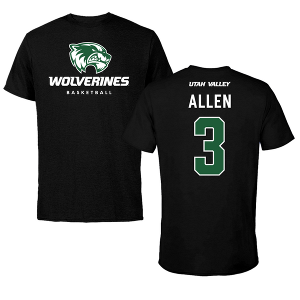 Utah Valley University Basketball Black Wolverines Tee - #3 Drake Allen
