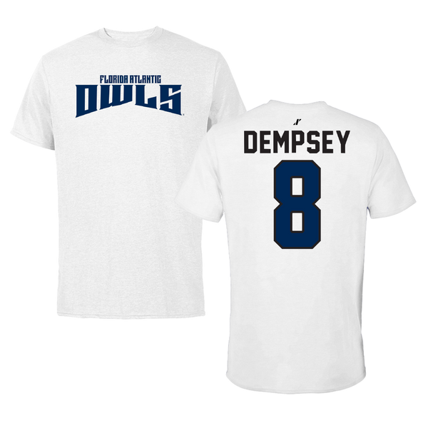 Florida Atlantic University Soccer White Tee - #8 Drew Dempsey