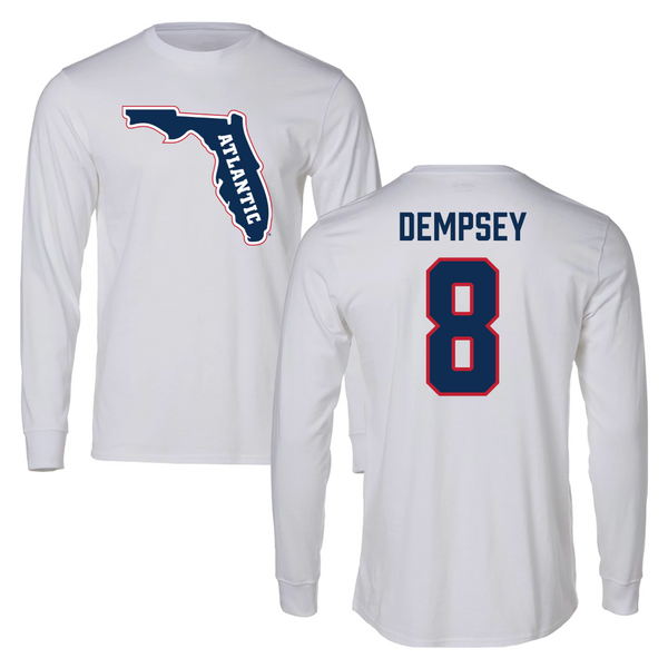 Florida Atlantic University Soccer White Long Sleeve - #8 Drew Dempsey