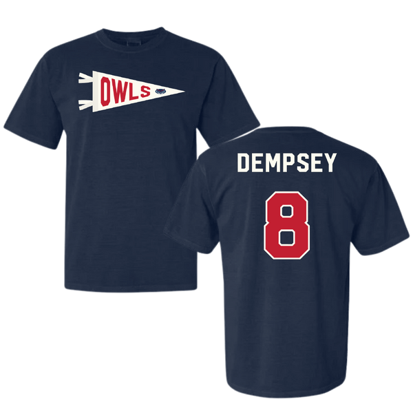 Florida Atlantic University Soccer Navy Pennant Comfort Colors Tee - #8 Drew Dempsey