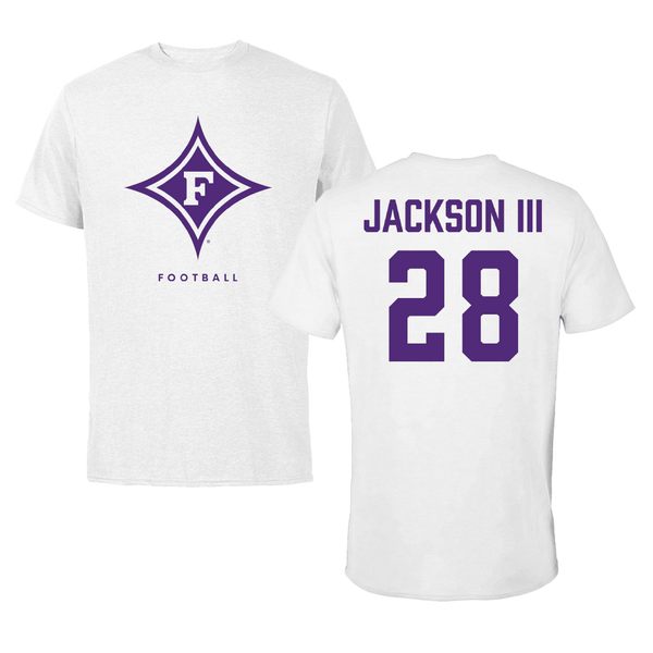 Furman University Football White Classic Performance Tee - #28 Eddie Jackson III