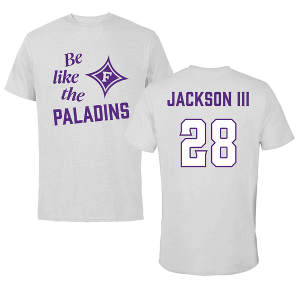 Furman University Football Light Gray Be Like Us Tee - #28 Eddie Jackson III