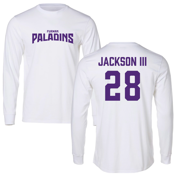 Furman University Football White Classic Long Sleeve - #28 Eddie Jackson III
