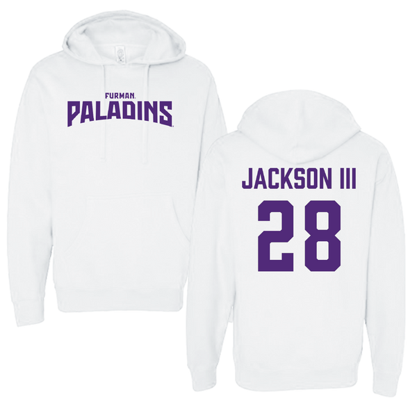 Furman University Football White Classic Hoodie - #28 Eddie Jackson III