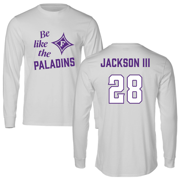 Furman University Football Light Gray Be Like Us Long Sleeve - #28 Eddie Jackson III