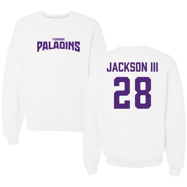 Furman University Football White Classic Crewneck - #28 Eddie Jackson III
