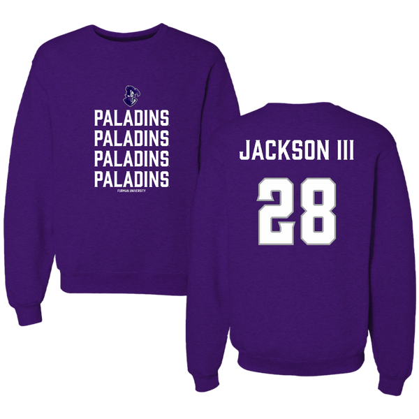 Furman University Football Purple General Crewneck - #28 Eddie Jackson III