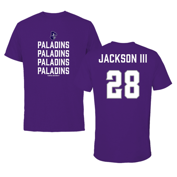 Furman University Football Purple Gameday Tee - #28 Eddie Jackson III
