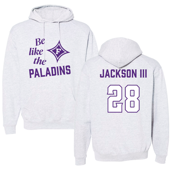 Furman University Football Light Gray Be Like Us Hoodie - #28 Eddie Jackson III