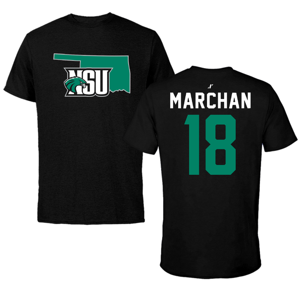 Northeastern State University Soccer Black State Tee - #18 Edson Marchan