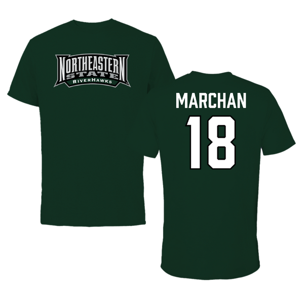 Northeastern State University Soccer Forest Green Block Tee - #18 Edson Marchan