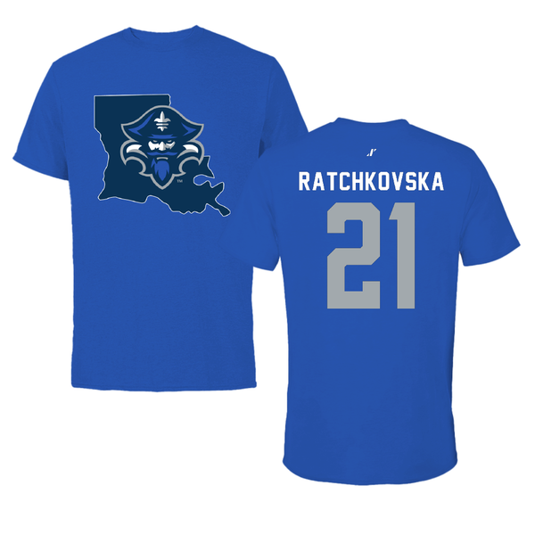 University of New Orleans Volleyball Blue State Tee - #21 Elani Ratchkovska