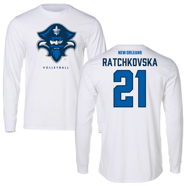 University of New Orleans Volleyball White Long Sleeve - #21 Elani Ratchkovska