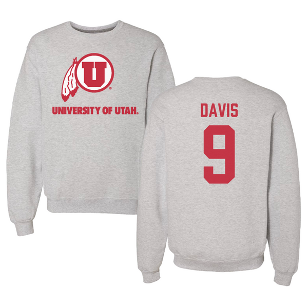 University of Utah Football Gray Crewneck - #9 Elijah Davis