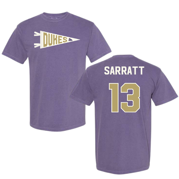 James Madison University Football Purple Pennant Comfort Colors Tee - #13 Elijah Sarratt