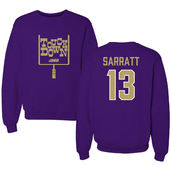 James Madison University Football Purple Touchdown Crewneck - #13 Elijah Sarratt