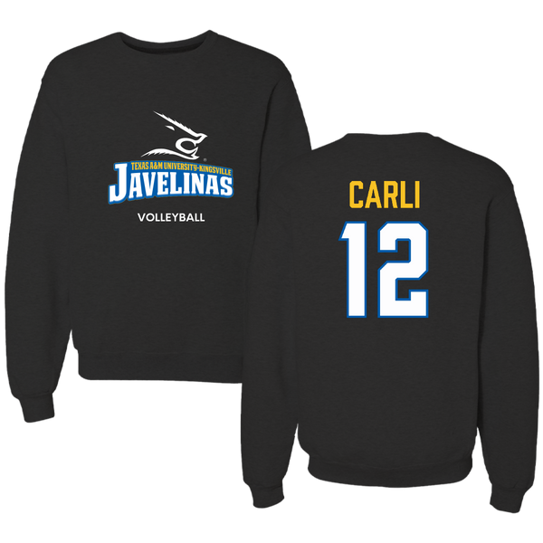 Texas A&M University-Kingsville Volleyball (W) Black Crewneck - #12 Elisa Carli