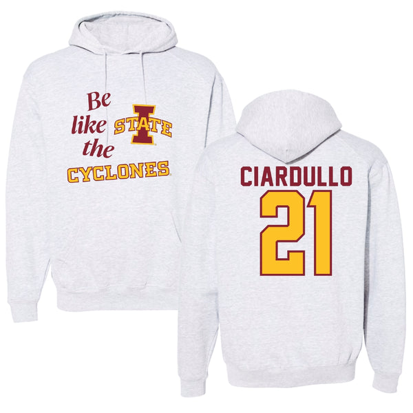 Iowa State University Soccer Light Gray Be Like Us Hoodie - #21 Ella Ciardullo
