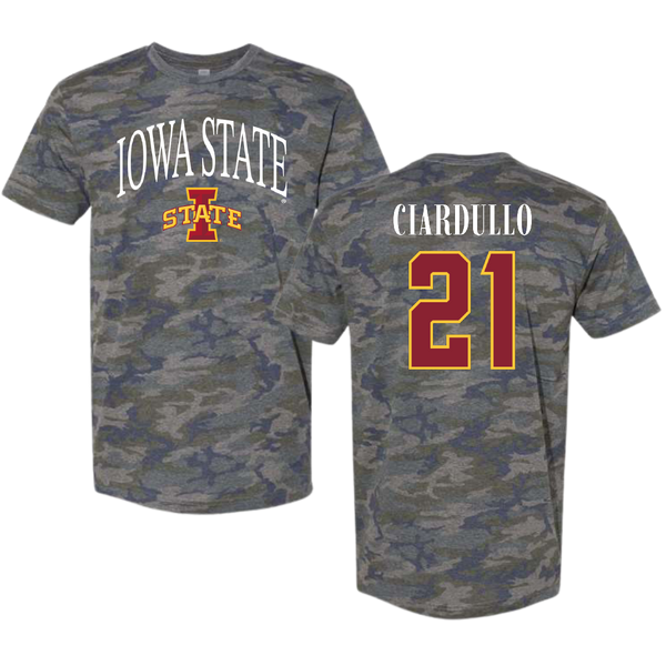 Iowa State University Soccer Vintage Camo Tee - #21 Ella Ciardullo