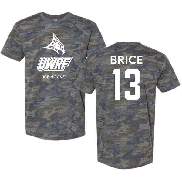 University of Wisconsin-River Falls Ice Hockey (W) Vintage Camo Tee - #13 Ellie Brice