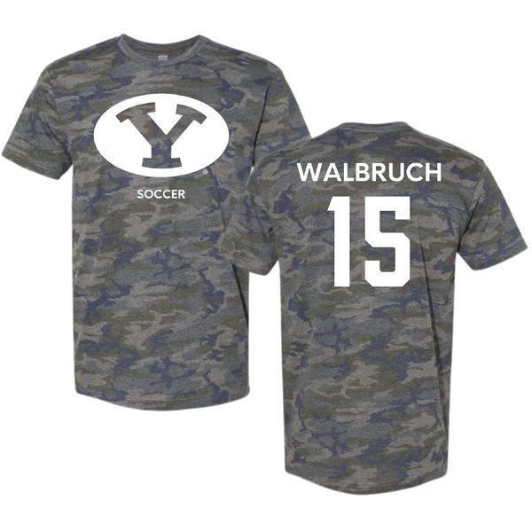 Brigham Young University Soccer (W) Vintage Camo Tee - #15 Ellie Walbruch