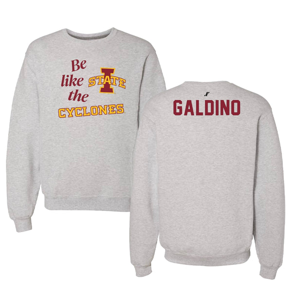 Iowa State University TF and XC Light Gray Be Like Us Crewneck - Emanuel Galdino