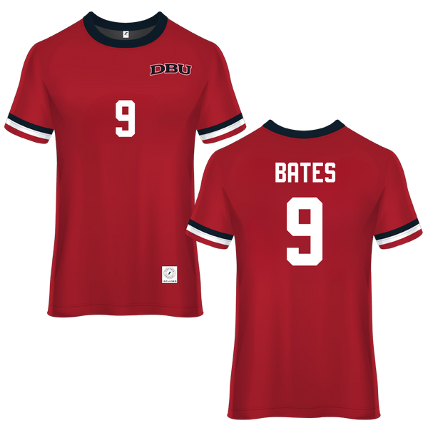 Dallas Baptist University Red Soccer Jersey - #9 Emily Bates